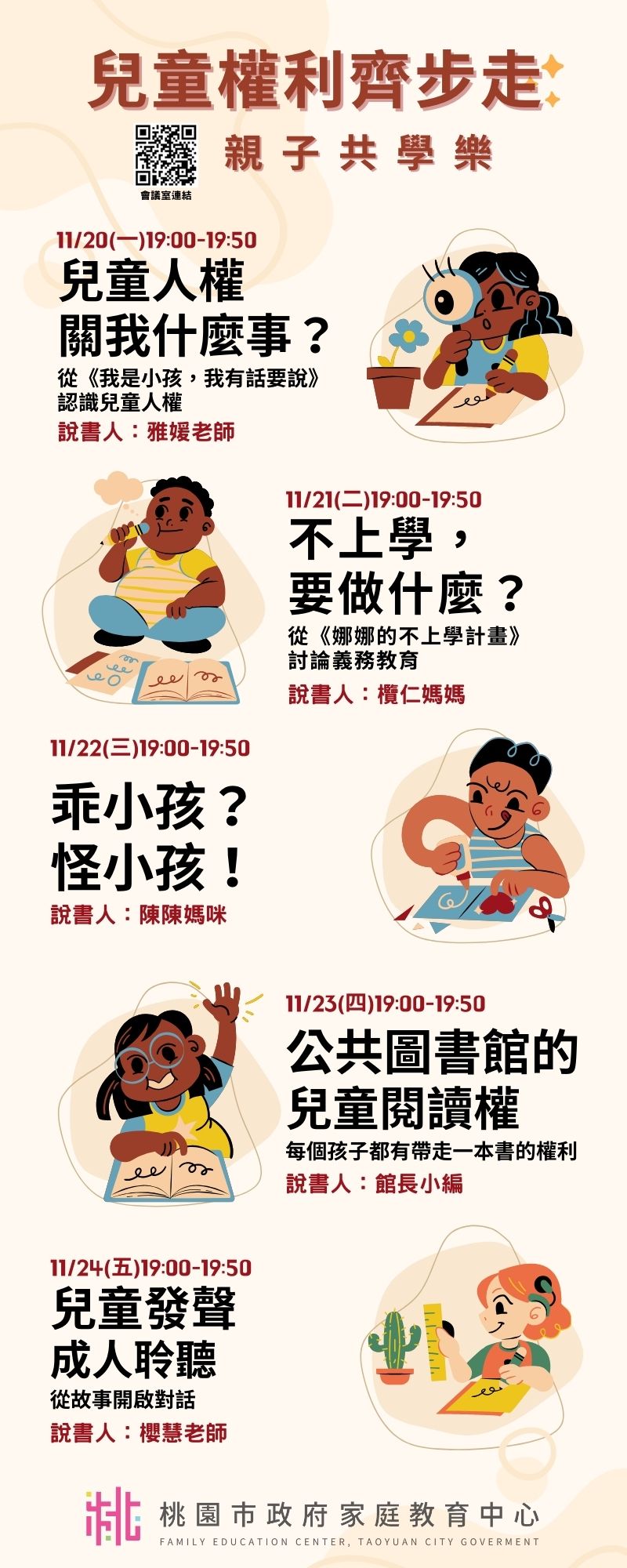 轉知家庭教育中心「小桃家11月課程資訊」、「兒童權利齊步走親子共學樂」及「與孩子的青春同行系列課程」活動