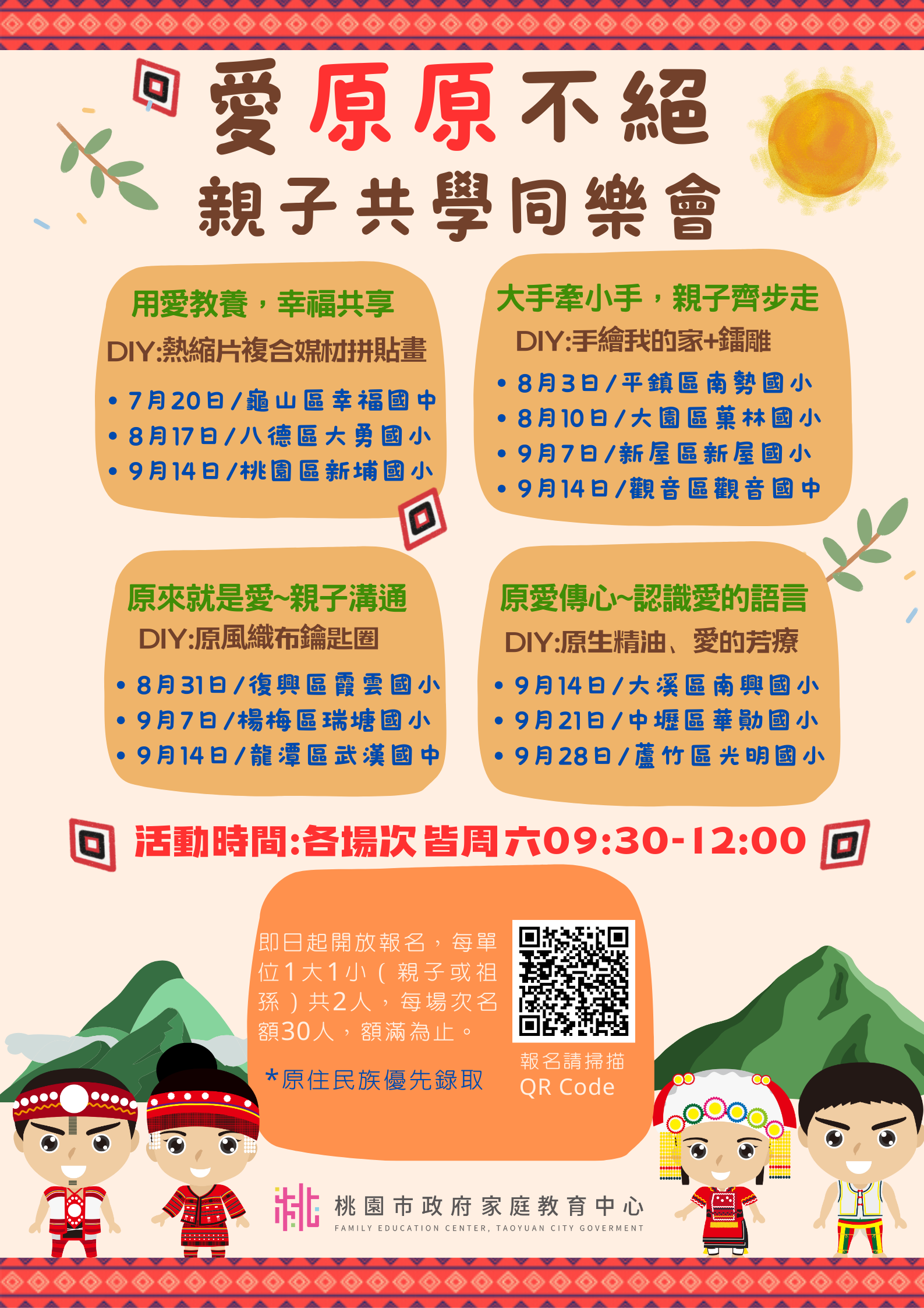 轉知桃園市政府家庭教育中心辦理113年原住民家庭教育「愛『原原』不絕-親子共學同樂會」